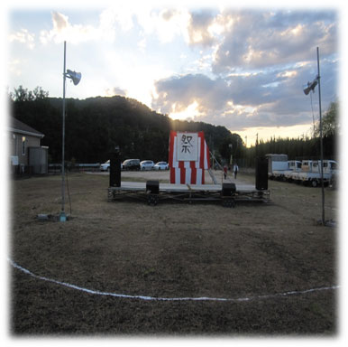 平成26年9月13日土曜日。皆様のご協力のお蔭で、今年も秋まつりを開催する事ができました。ここ何年間というもの、前日までの準備の間で、ほぼ必ずといって良いほど大雨が降り、会場であるグランド駐車場が大変な状態となっておりましたが、今年は好天に恵まれ、天候においてはまったく問題を感じさせない年でした。また、当日の気温も近年と比べて涼しく、会場設営等の作業に関しても過ごしやすい日となりました。ただ、祭りが開催された夕方以降は、想像以上の気温の低下に肌寒い夜となり、利用者様の体調が心配される場面も見られました。