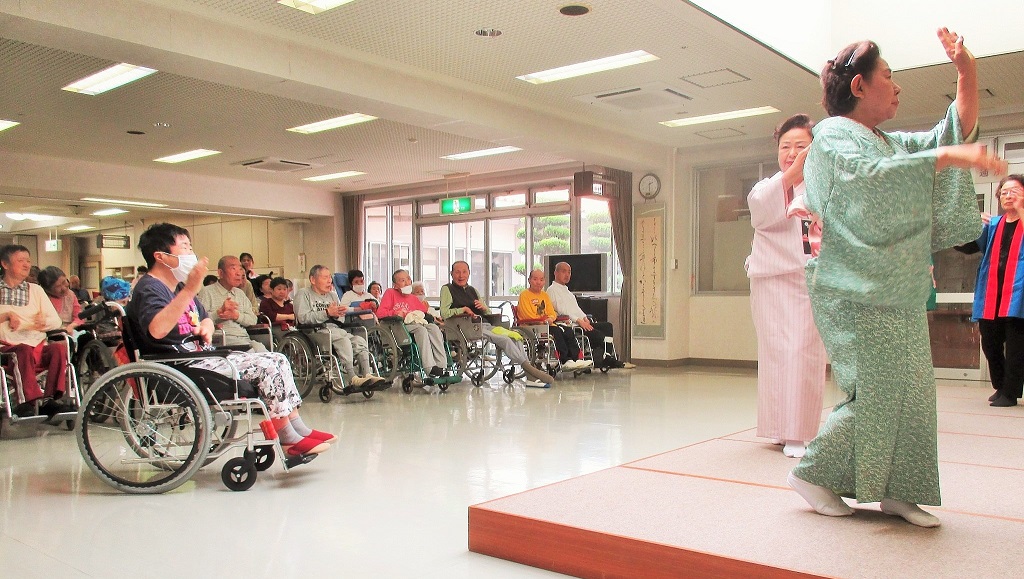 皆様がご来所くださるようになり10年以上の年月が過ぎましたが、やはり体を動かすことと、楽しみを持たれているせいか、踊りには衰えも見せず、表情や指の先まで集中した動きには、やはり見入るものがあります。
