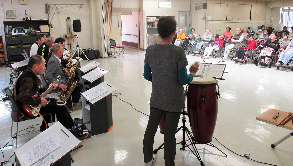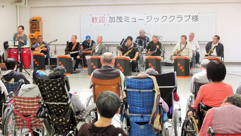 5月9日、神辺ホームに、加茂ミュージックフレンド様がご来所になり、生バンドによる演奏のご披露をいただきました。